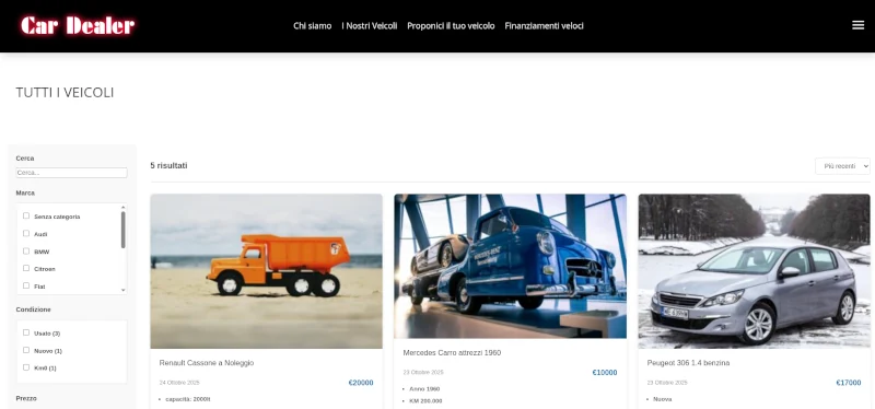 **Per concessionarie che vogliono trasformare il parco auto in vendite rapide, offrendo un’esperienza di ricerca potente e un contatto immediato su ogni veicolo.**