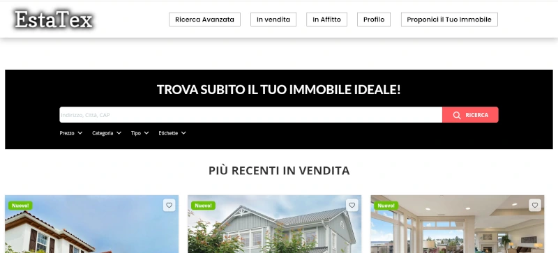 Sito Real estate con ricerca e filtri specifici immobiliari + mappe interattive